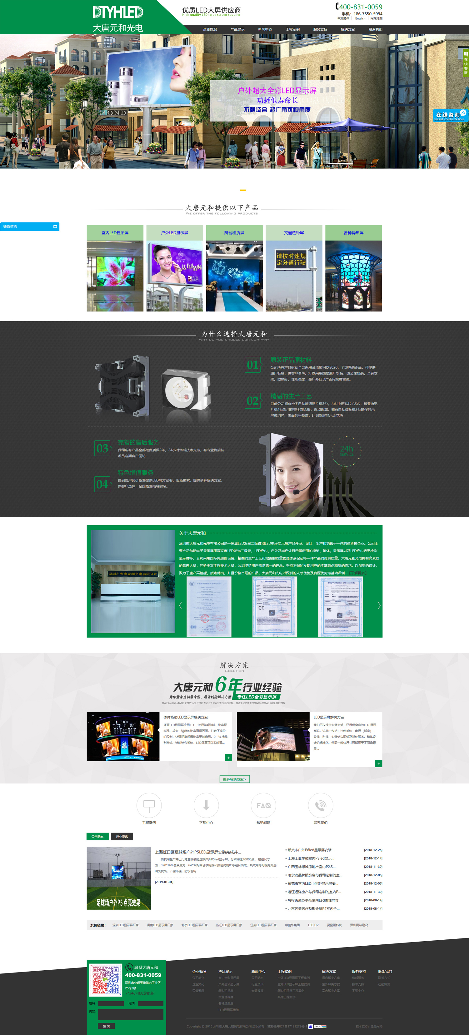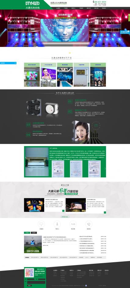 結(jié)合大唐元和的logo元素及l(fā)ed顯示屏行業(yè)的屬性,將網(wǎng)站主色調(diào)定位綠色,將黑白色作為輔助色,使網(wǎng)站整體保持著清簡(jiǎn)潔明了的設(shè)計(jì)風(fēng)格