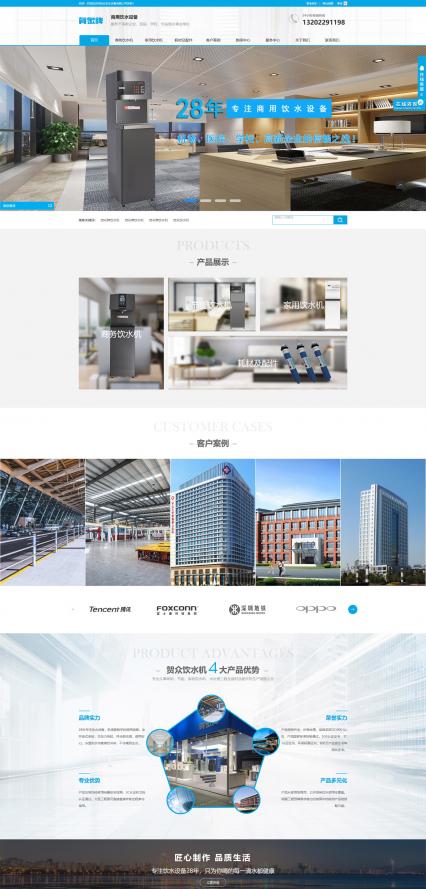 結(jié)合賀正飲水設(shè)備的logo元素及飲水機(jī)行業(yè)的屬性,將網(wǎng)站主色調(diào)定位藍(lán)色,將白色作為輔助色,使網(wǎng)站整體保持著清新明了的瀏覽風(fēng)格