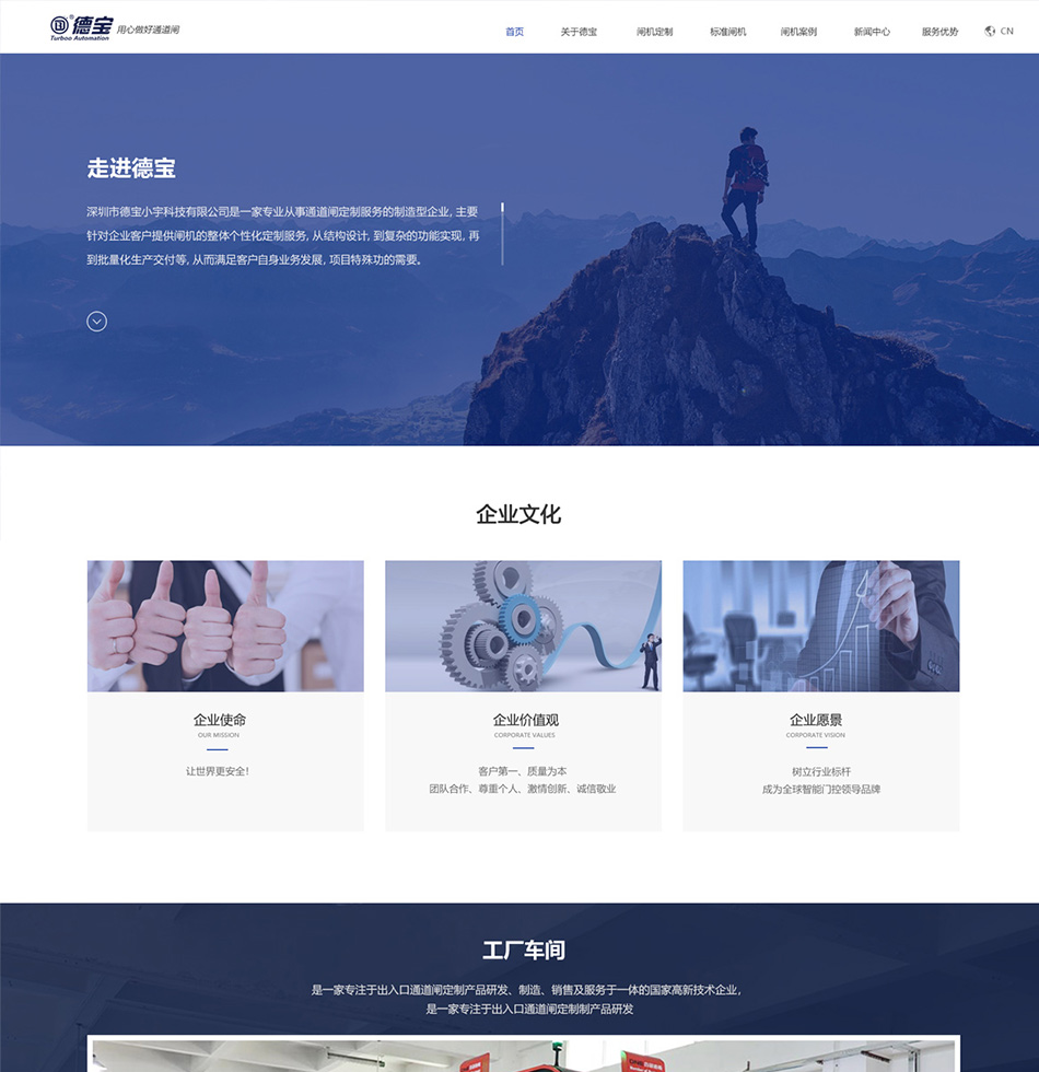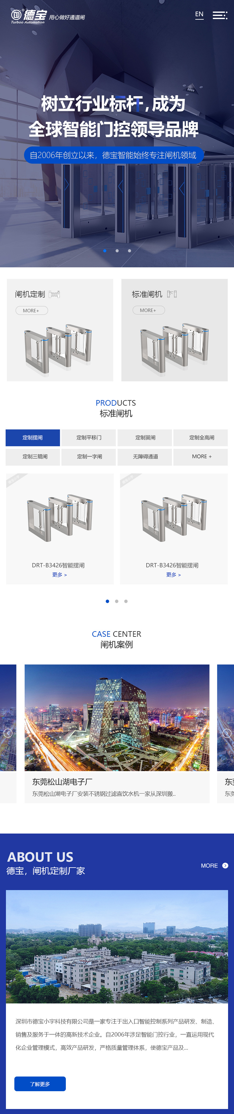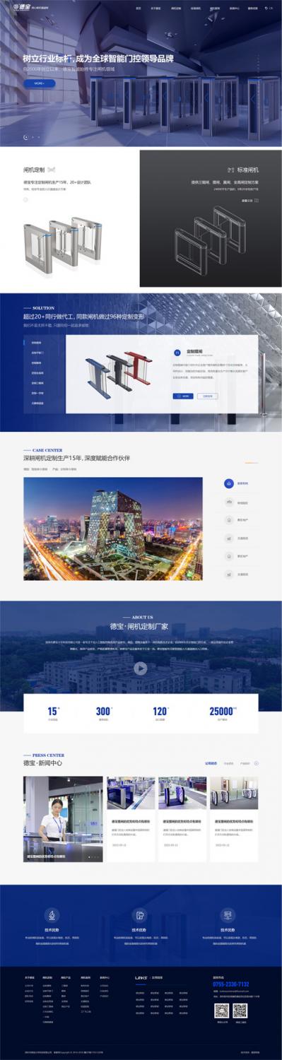 圍繞閘機網(wǎng)站建設特點結(jié)合德寶小宇的品牌元素和行業(yè)屬性,整站采用了科技藍作為為主題色,網(wǎng)站風格簡約厚重而不失科技感,符合閘機網(wǎng)站設計特征和品牌調(diào)性。