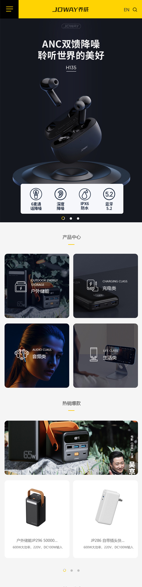 圍繞移動電源網(wǎng)站設(shè)計風(fēng)格,結(jié)合喬威品牌元素,網(wǎng)站設(shè)計主色系采用黃色,也符合移動電源網(wǎng)站設(shè)計調(diào)性。網(wǎng)站整體保持著清晰明了的設(shè)計風(fēng)格