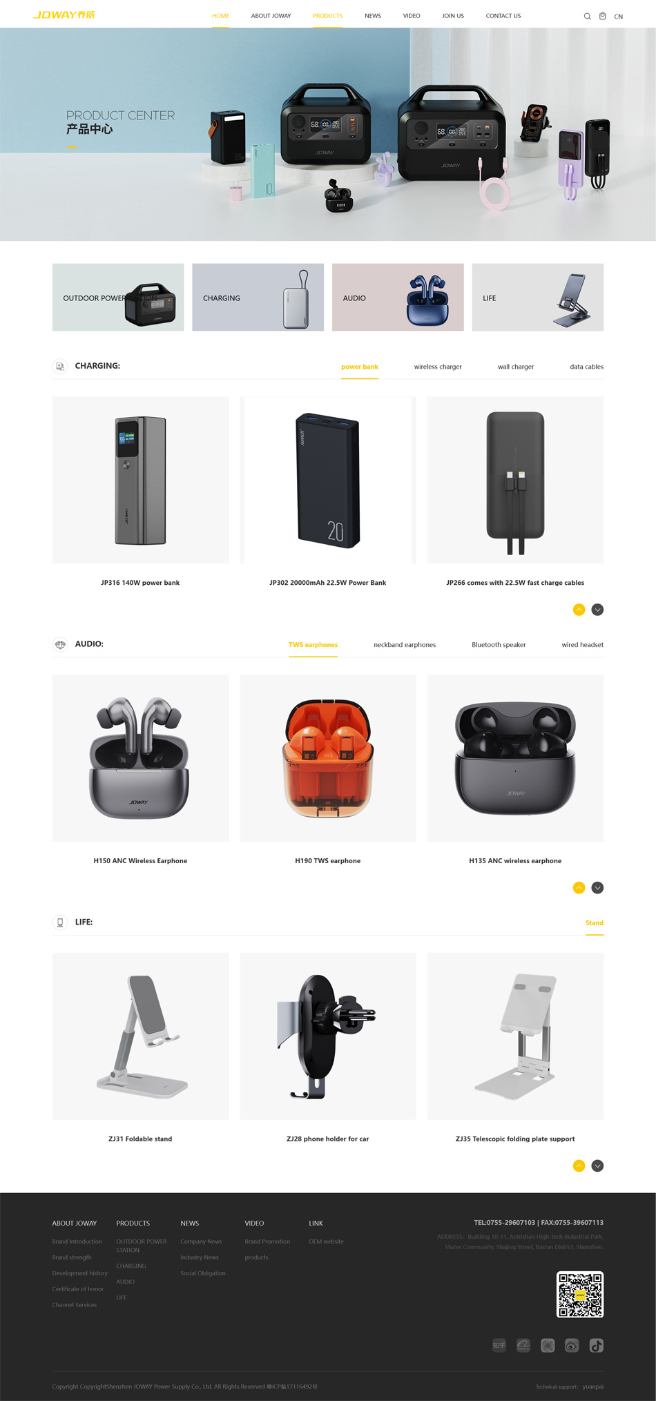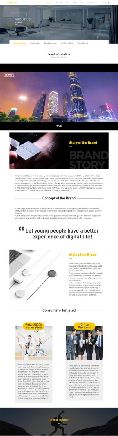 喬威電源成立于2004年,是一家數(shù)碼3C產(chǎn)品公司,現(xiàn)擁有一千多名員工 。網(wǎng)站定位以塑造企業(yè)形象及產(chǎn)品為導(dǎo)向結(jié)合移動電源網(wǎng)站設(shè)計風(fēng)格,展開整站的策劃設(shè)計