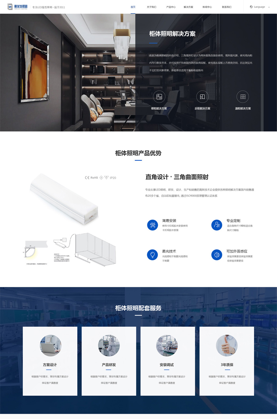 結(jié)合賽萊特照明的產(chǎn)品屬性和品牌元素,圍繞LED照明網(wǎng)站設(shè)計(jì)風(fēng)格,整站采用科技藍(lán)為主色調(diào),環(huán)保綠為輔助色,網(wǎng)站整體風(fēng)格簡(jiǎn)約大氣不會(huì)顯得雜亂,符合LED照明網(wǎng)站制作的特性