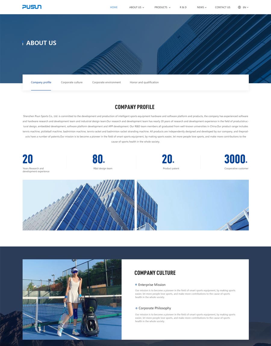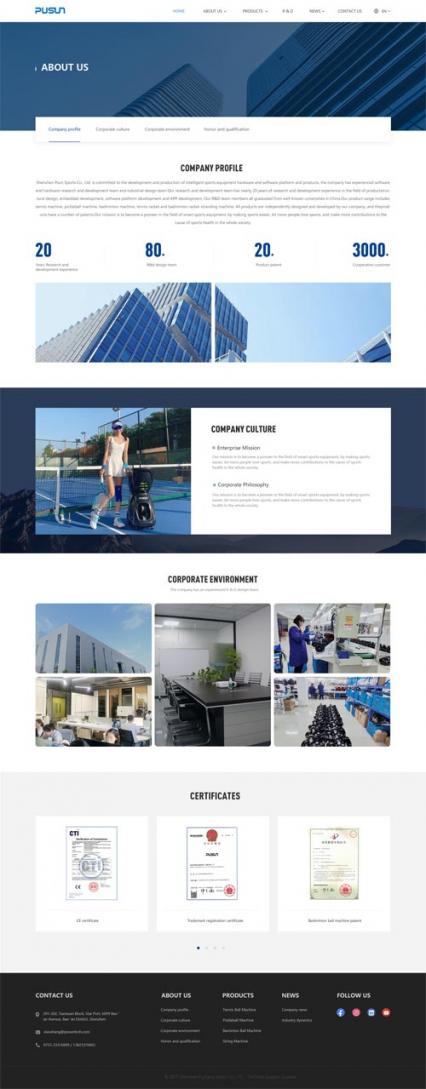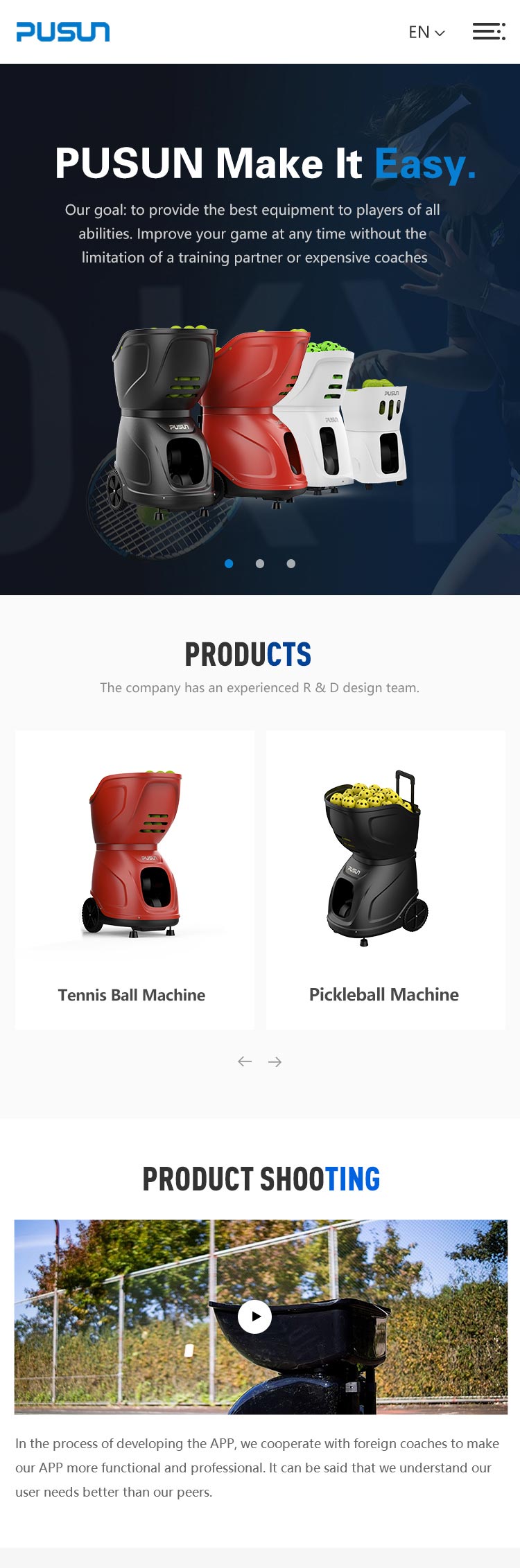 普尚體育擁有20年的研發(fā)經(jīng)驗(yàn),主營(yíng):網(wǎng)球發(fā)球機(jī)、匹克球發(fā)球機(jī)、羽毛球發(fā)球機(jī)等?;谄髽I(yè)以提升品牌形象和開展多國(guó)外貿(mào)業(yè)務(wù)的建站目標(biāo),采用多語種版展示,圍繞體育設(shè)備網(wǎng)站設(shè)計(jì)屬性展開整站的策劃設(shè)計(jì)。
