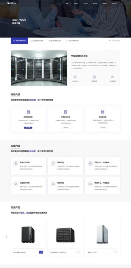 根據(jù)群暉科技的品牌屬性及產(chǎn)品特性采用科技藍(lán)為網(wǎng)站主題色,黑白灰為整站色系調(diào)性,既體現(xiàn)了企業(yè)產(chǎn)品特性網(wǎng)站簡約大氣厚重科技感滿滿,同時(shí)也體現(xiàn)了網(wǎng)絡(luò)存儲網(wǎng)站設(shè)計(jì)行業(yè)調(diào)性。