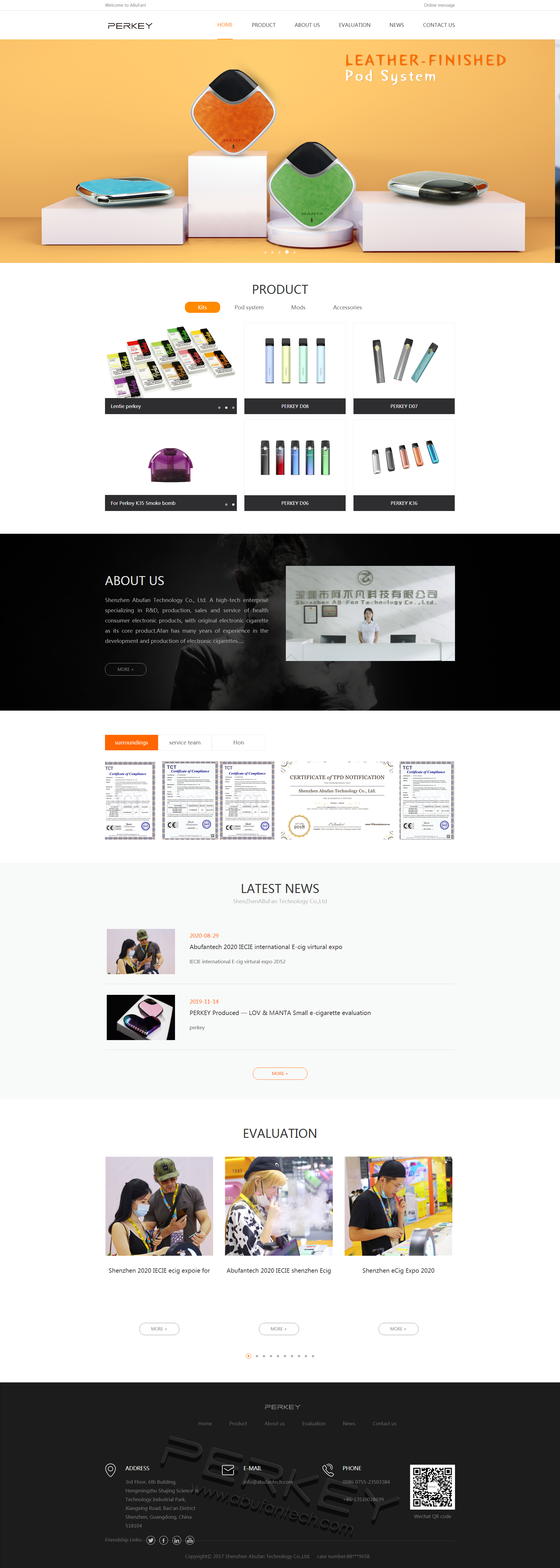 阿不凡專業(yè)生產(chǎn)各種電子煙具,主要面對歐美市場。官網(wǎng)的定位以塑造形象及展示產(chǎn)品。輔助線上及線下營銷工作的開展。