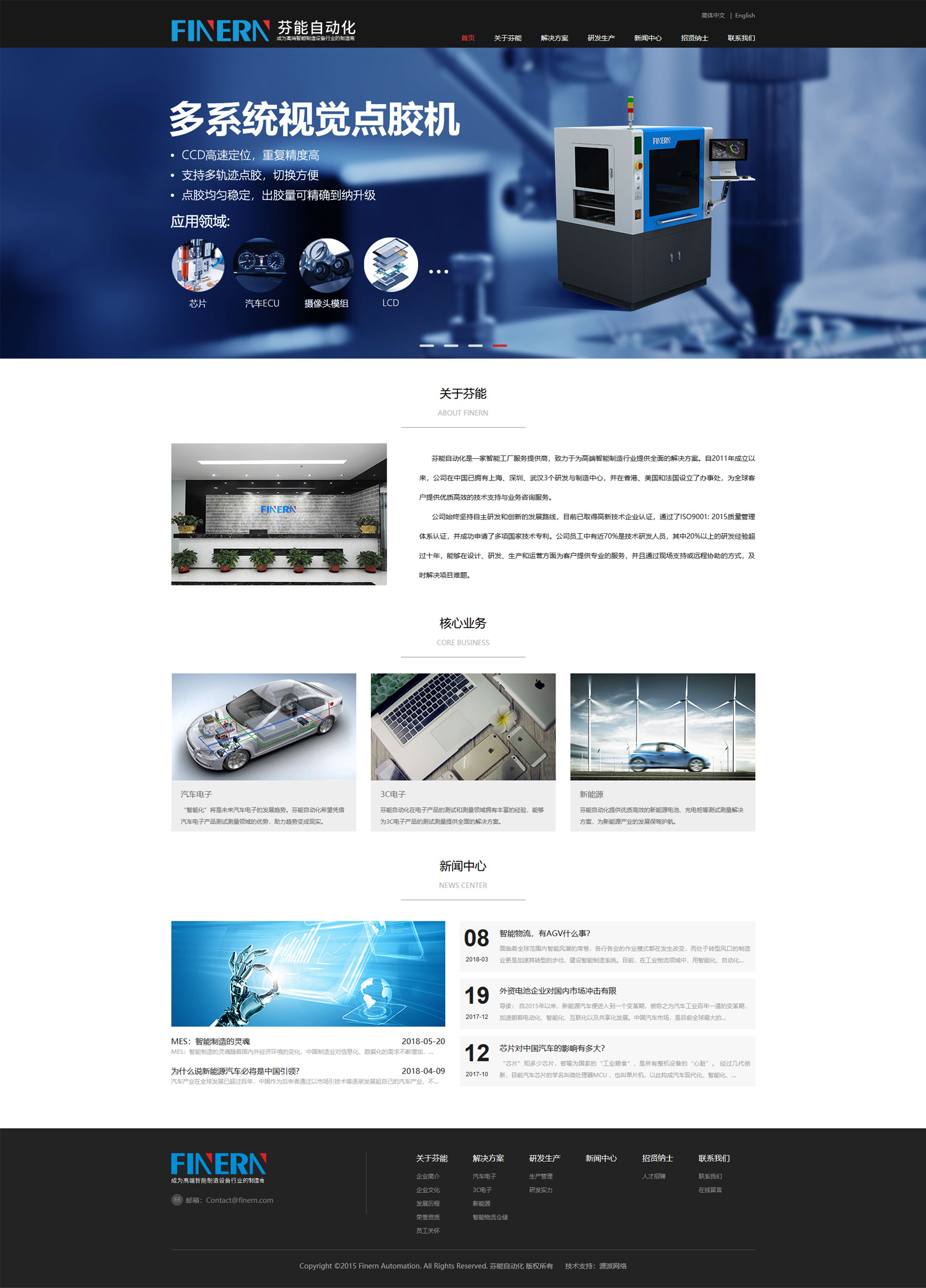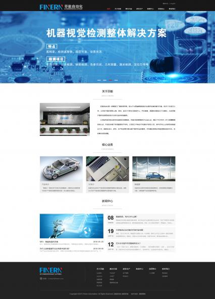網站建設整體風格圍繞芬能自動化的品牌logo元素采用了藍色系作為網站設計的主色調,使網站建設風格整體保持著環(huán)保智能的科技屬性。